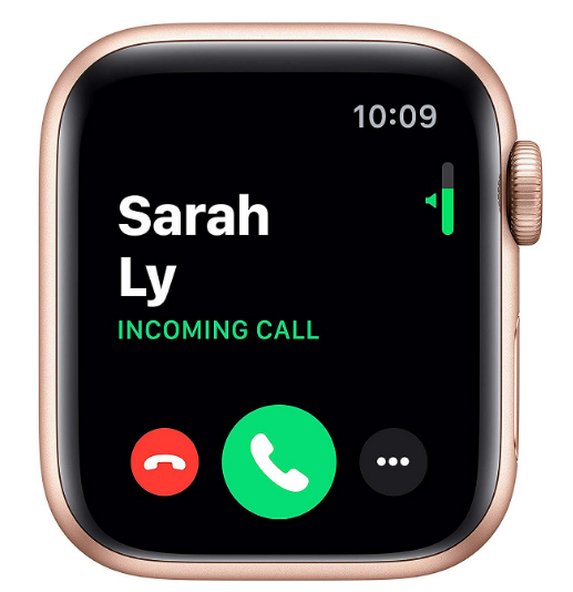 The Apple Watch displays a call screen when you receive an incoming Telegram call, similar to native calls on iOS.
