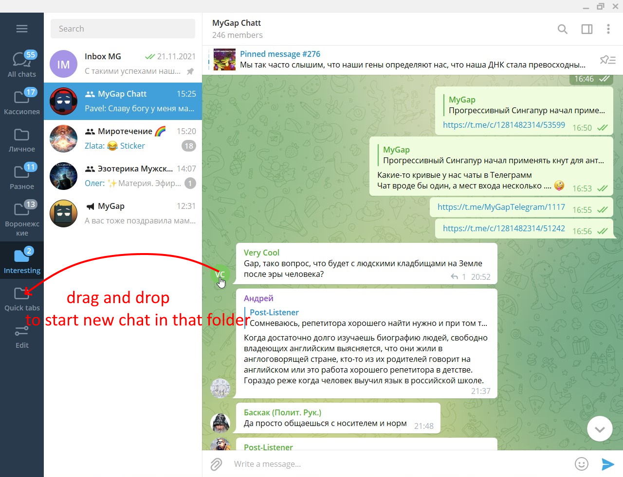 I want to drag and drop my chats into groups.