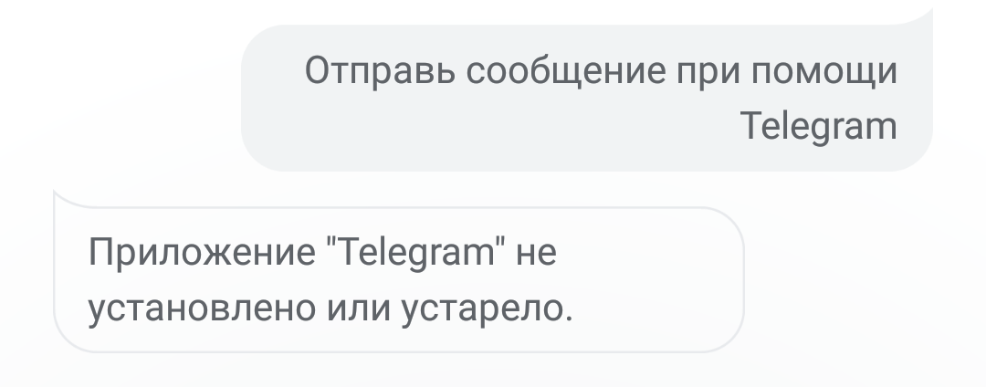 Now when trying to write a Telegram message using Google Assistant, an error appears: "The Telegram app is not installed or is out of date".