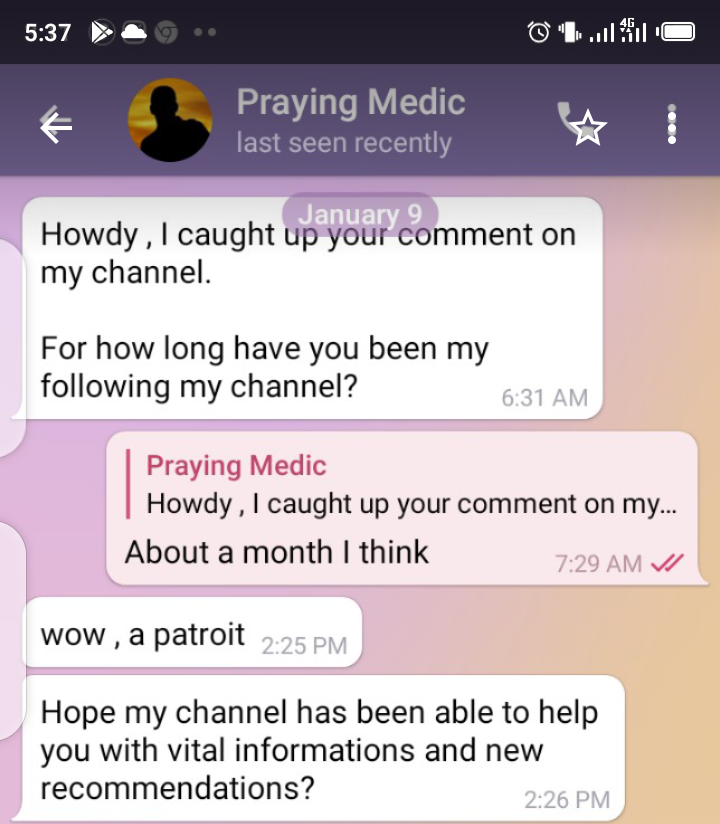 It was really an invasion of my privacy, I was sure Praying Medic had some help for me personally, or I would never have chatted with the impostor. Kindly take action now. Thank you