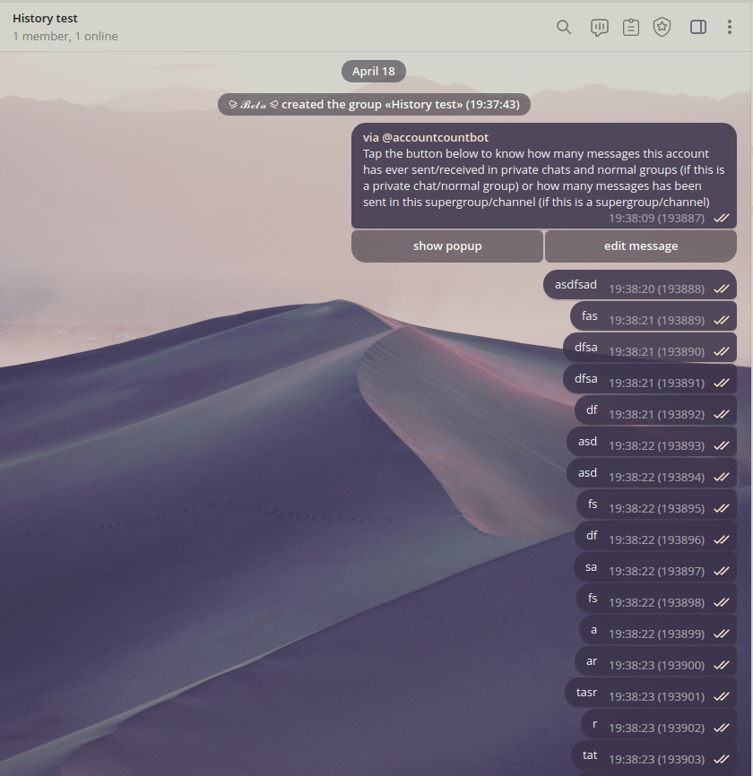 For advanced users: if the Telegram API allows it, you can extract the message history directly into a local database - and then import it into the group after conversion.