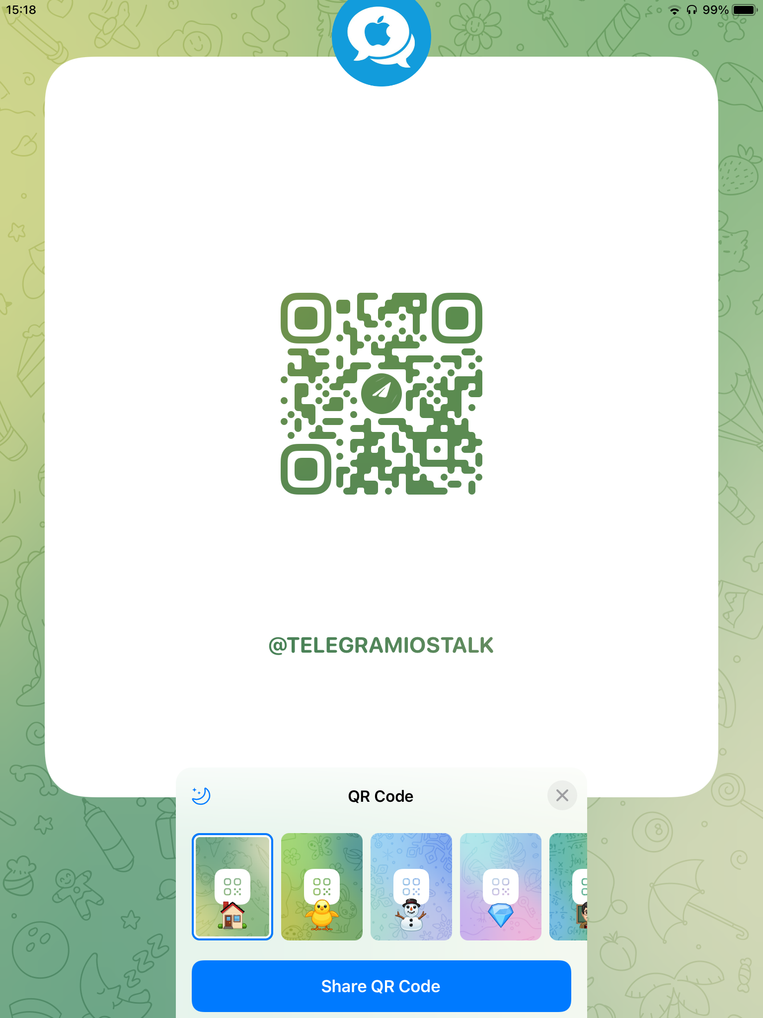 2. Tap on the QR Code symbol near the chat's link