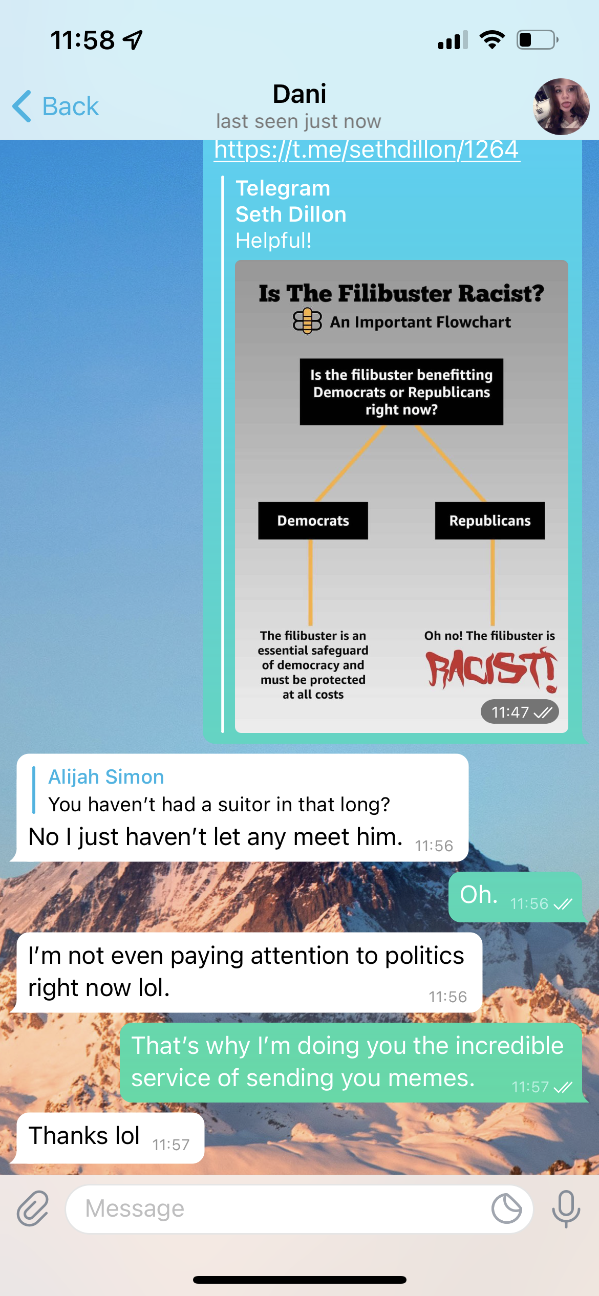 2. At first, Telegram recognizes it and within the conversation the name I have for them shows up