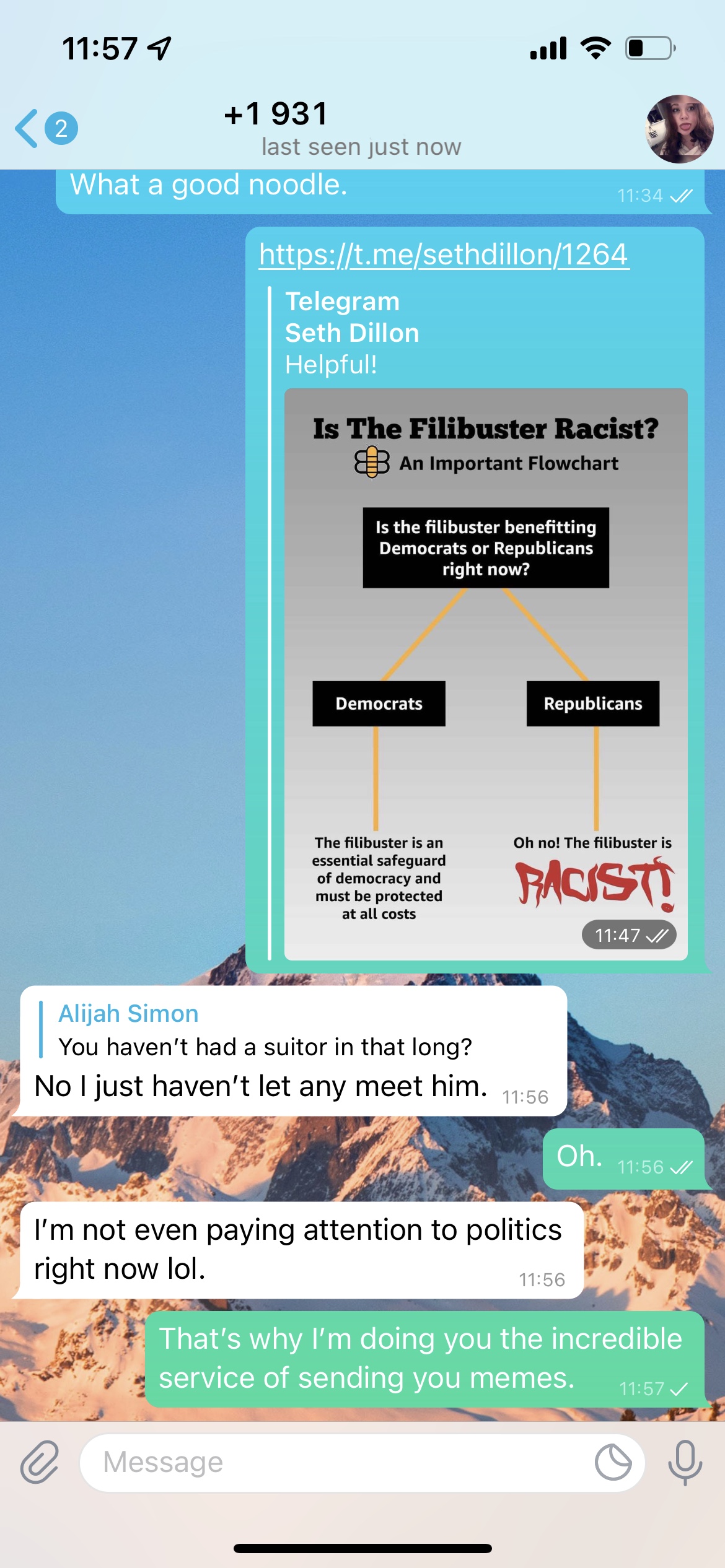 2. At first, Telegram recognizes it and within the conversation the name I have for them shows up