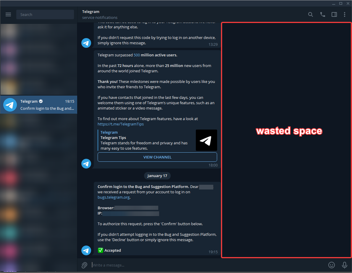 When the message count reaches a million, old messages disappear. Steps to reproduce 1. Be an active Telegram user 2. Wait until the coveted number of incoming/outgoing messages is reached. 3. Eh, it's…