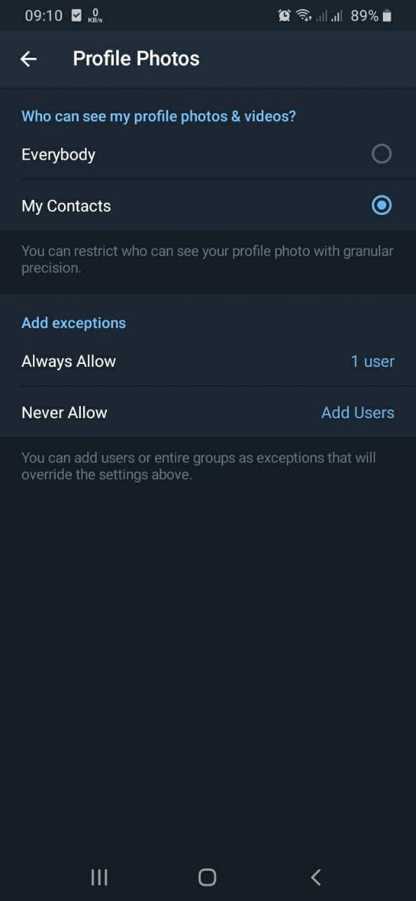When setting a profile picture or video that's only visible to contacts (or certain users, groups etc.), allow choosing an alternate picture or video that will be shown to everyone else. Use cases -…