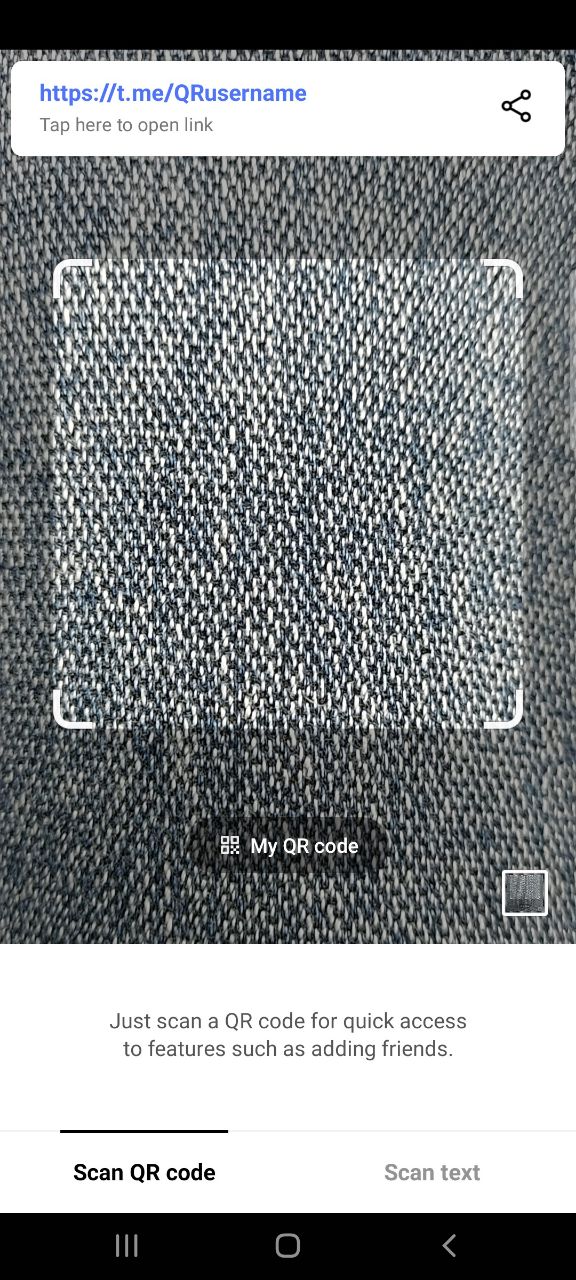 An option to scan QR-code to join a group or channel. I think it would be much faster (I mean in real-world street Ads) to scan a QR-code than asking users to type a channel name (or to ask them to install and use 3rd-party apps to scan such a code). I suggest adding a button with QR-code icon somewhere next to the search field at the main screen (where the list of channels/groups is shown).
