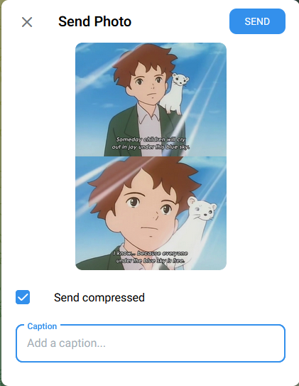 When trying to send a picture (pasting it in this case), you can't send it uncompressed in Web Z.