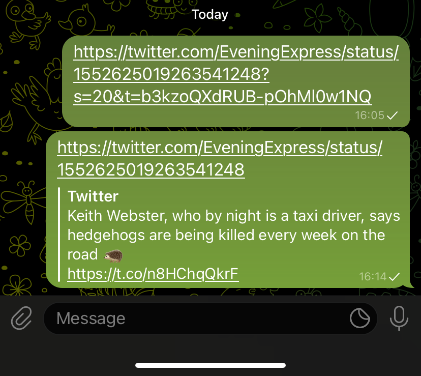 https://twitter.com/telegram/status/1582718222167527424?s=20&t=UQnylgZdko049-EU9GbebA