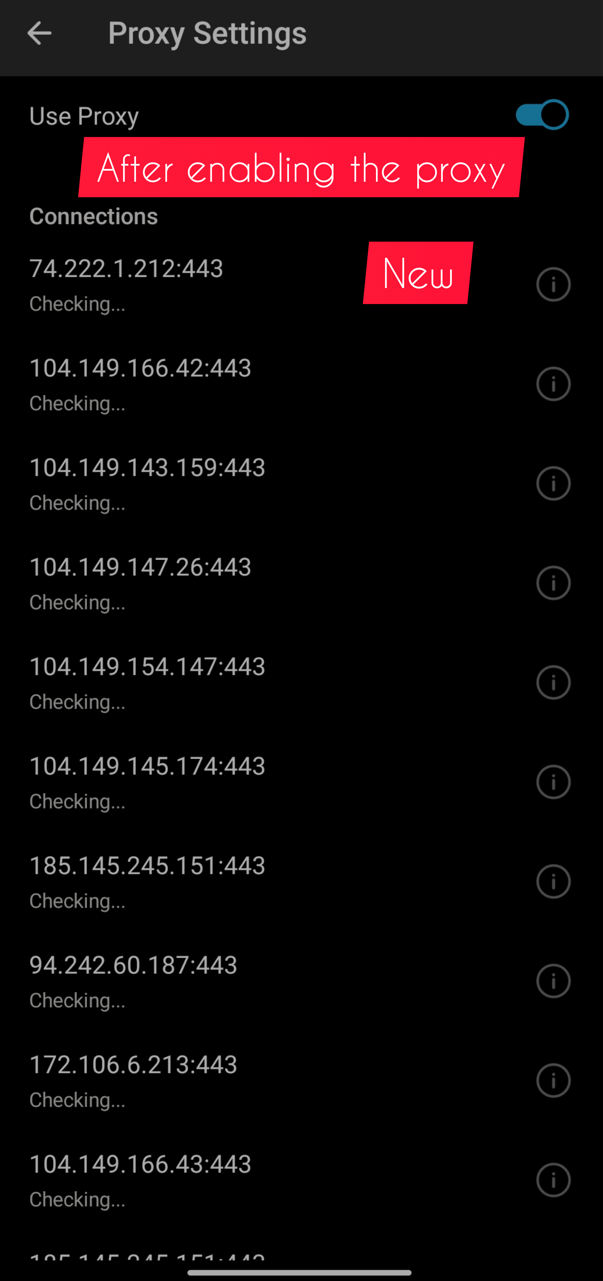 3. Connected proxy is showing on the top of the list.