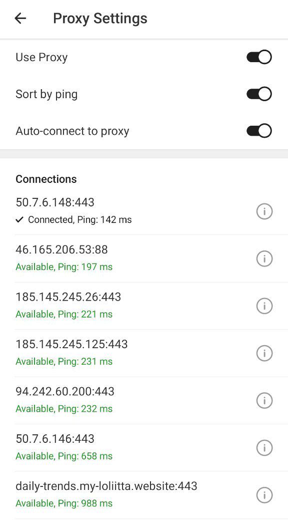 6. For the love of hell please add it because it also affects sorting by ping, slowing it down. Having new and healthy and low ping proxies added to the end of the list causes them pinged much later than other ones, while they should get pinged sooner than other ones to sort and move them quicker than other ones. DON'T ONLY SHOW THEM AT THE TOP OF THE LIST. PUT THEM REALLY AT THE THE TOP. When adding multiple proxies, only the last added one stays at the top. Even the last added one is not actually at the top of your actual list in the source code. It only pretends it is.