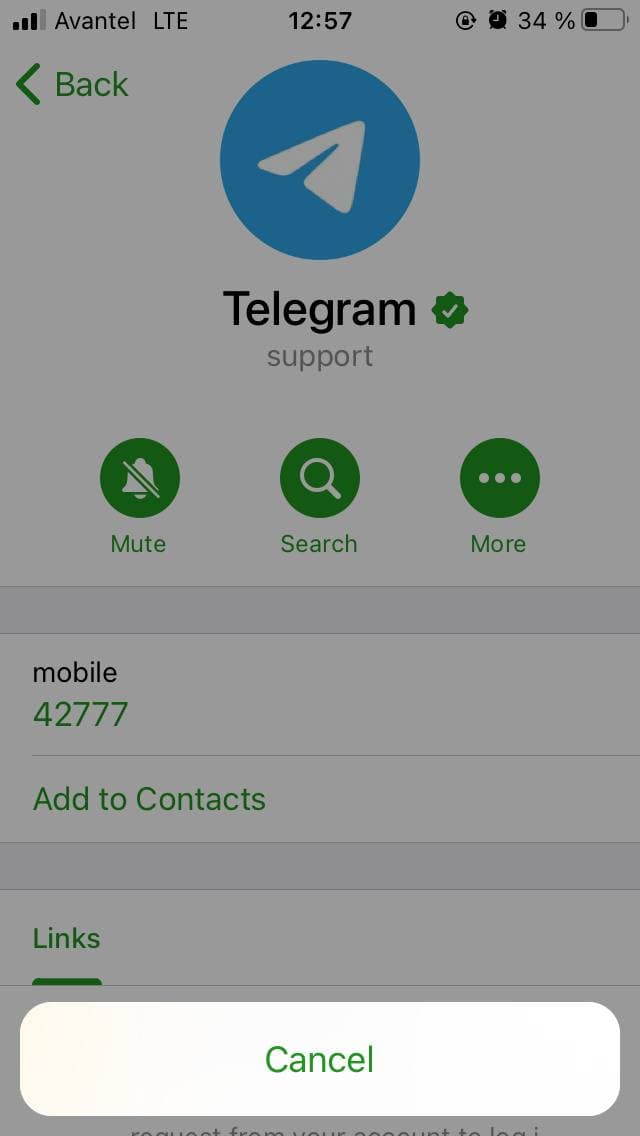 1. Open the profile of a verified channel without joining (e.g. @Telegram or @contest)