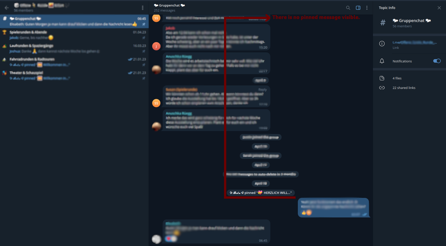 Pinned Messages in # General (main) Topic are not shown or displayed