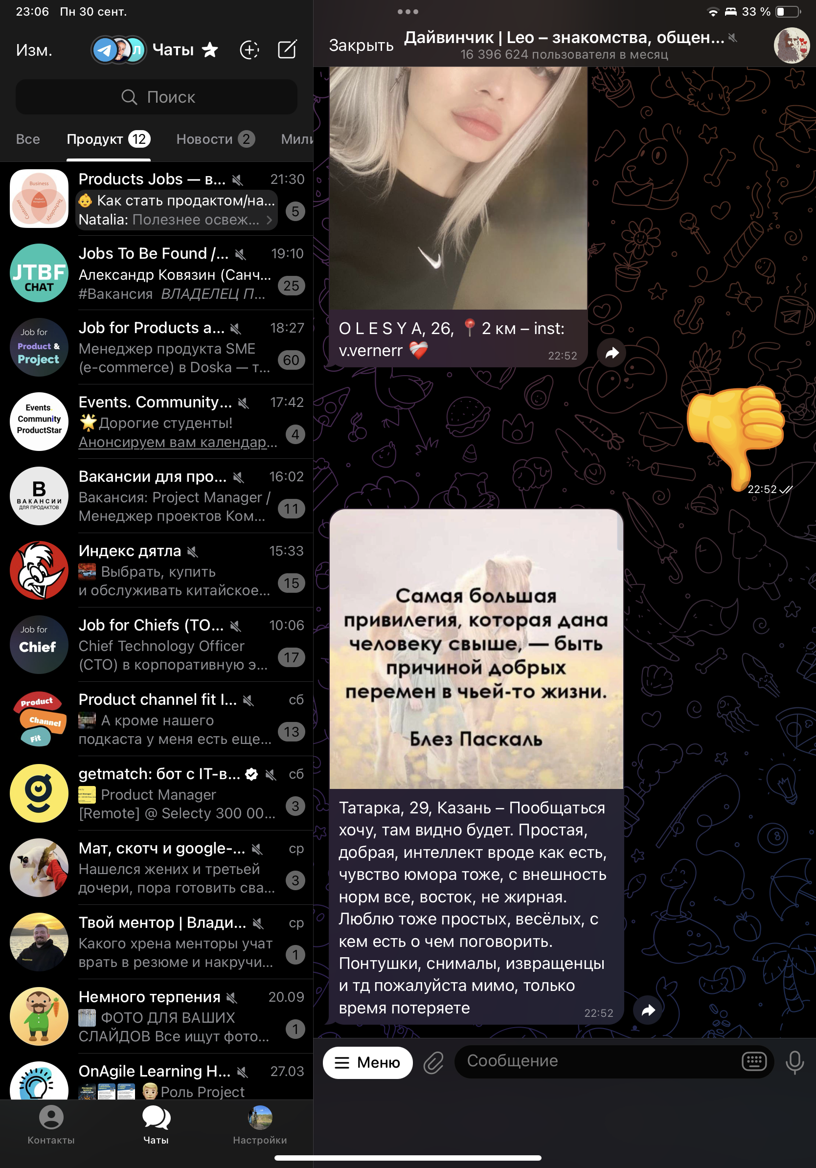 Telegram iOS 9.6.1 (25771), iPad Pro 11 inch (3th gen), 16.4.1