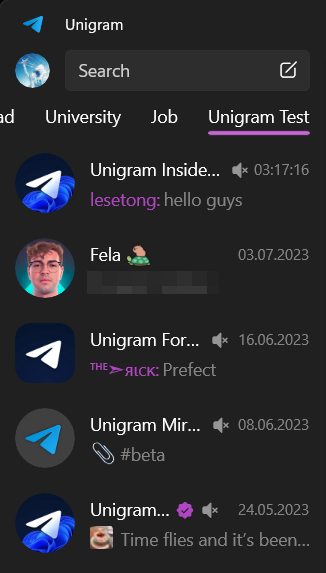 Unigram 9.6 (8706), TDLib 1.8.14, G5 MD, Windows 11