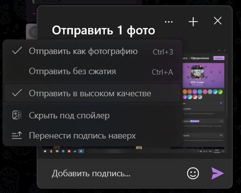 An option in Advanced Settings to send large photos (side limit up to 2560px)