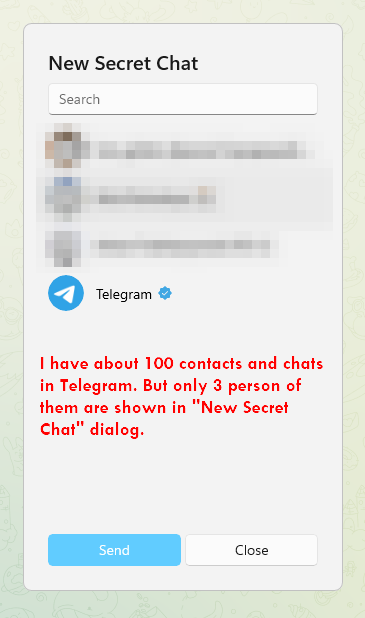 New secret chat dialog is broken (cannot find my contacts)