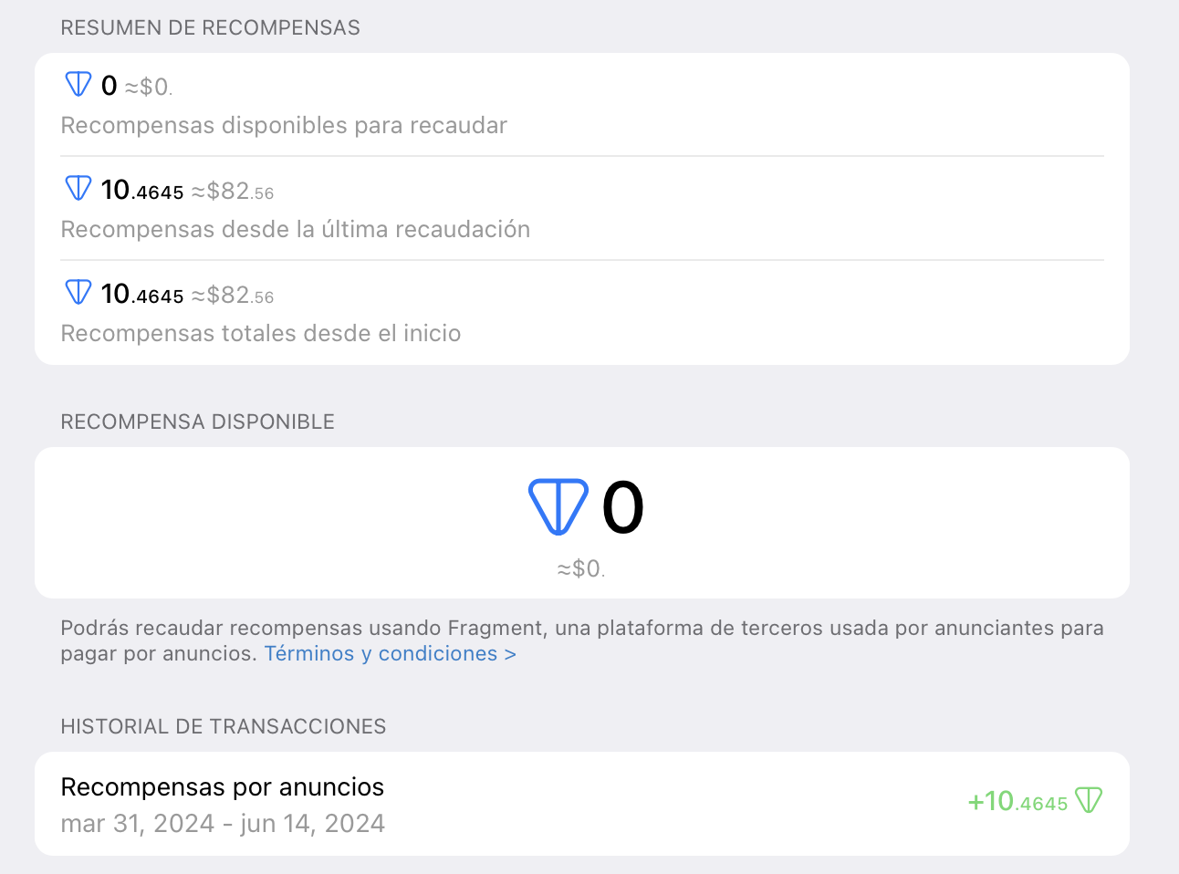 I have been accumulating rewards in TON for several months since the feature to post ads in channels was activated. I have now generated over 10 TON. Previously, I was unable to withdraw my rewards, and the support team indicated that a minimum of 10 TON was required for withdrawals.