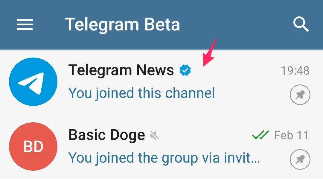 2. See in your chat list a verified muted chat (eg. @telegram).