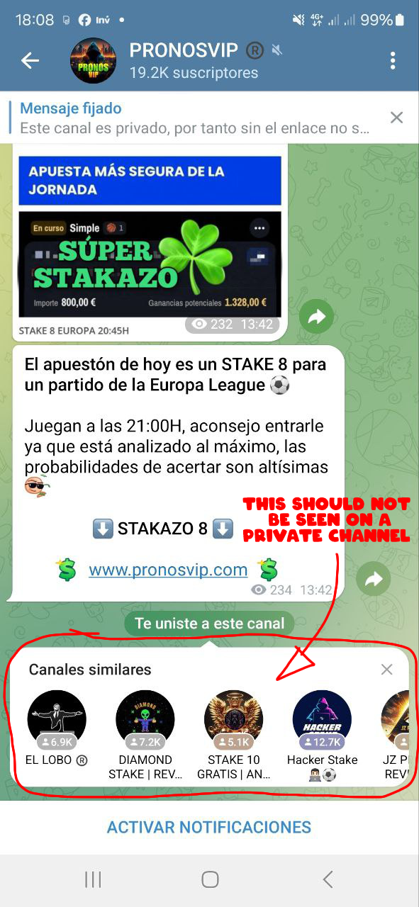 The report is clearly telling you that if you switch from a public channel to a private one, it still shows similar channels, which should not appear since it is private.