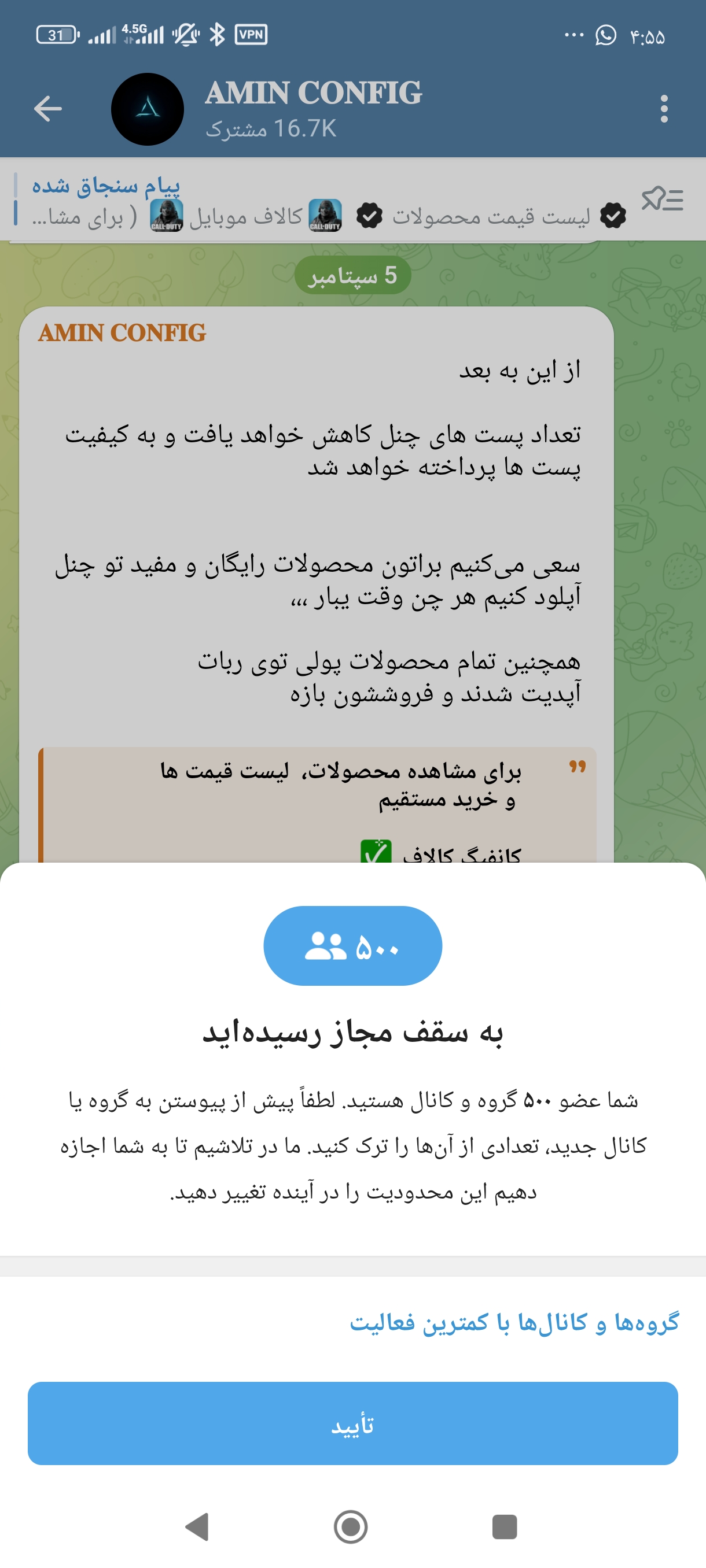 I’m getting the “Limit Reached: 500 groups and channels” error, but I have joined only 5 channel