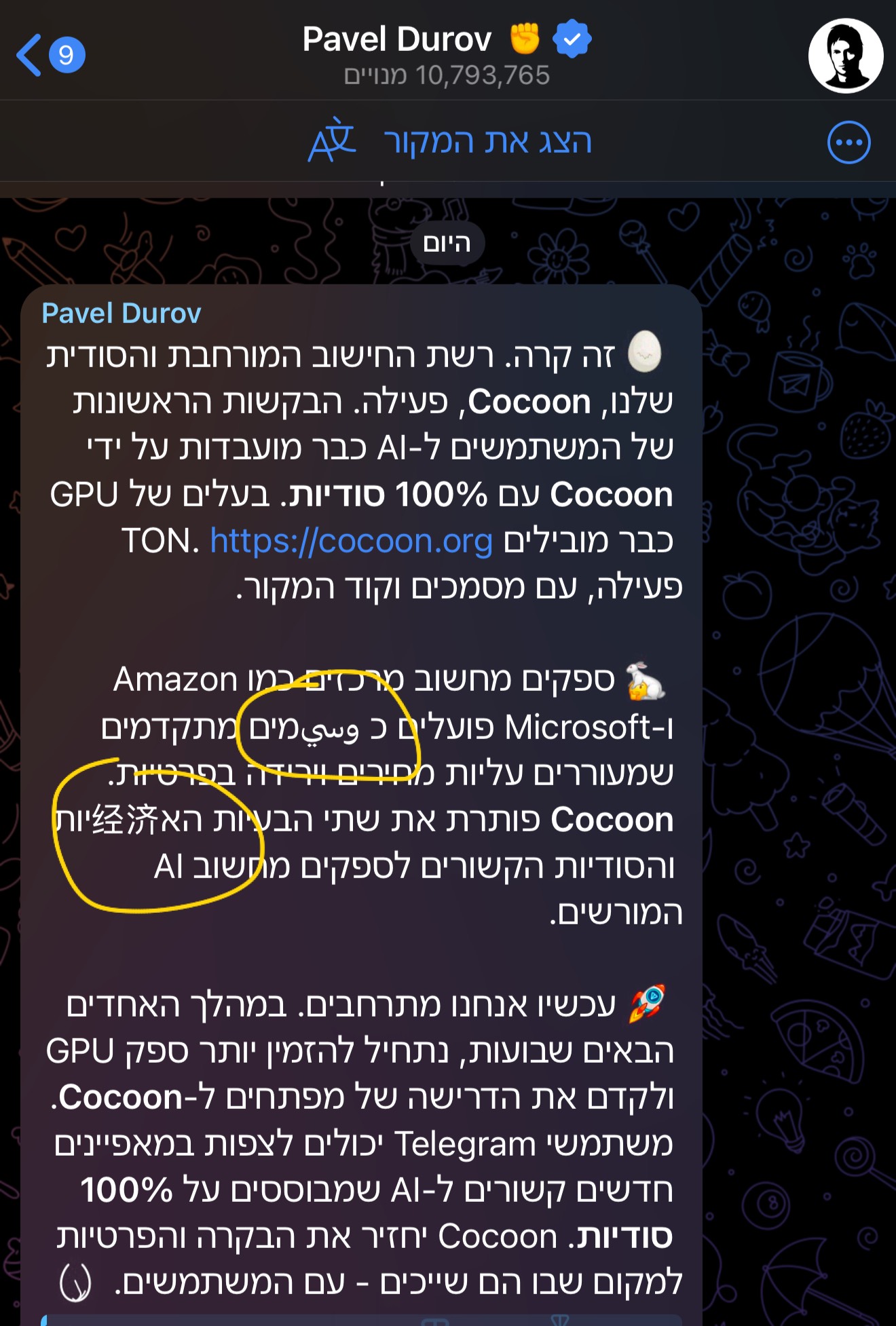Since telegram start used cocoon network to translate messages in app.