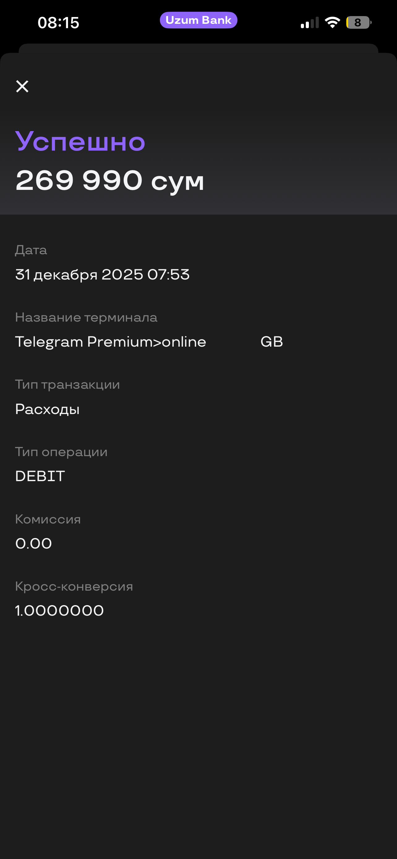 — Amount paid:269000 USZ