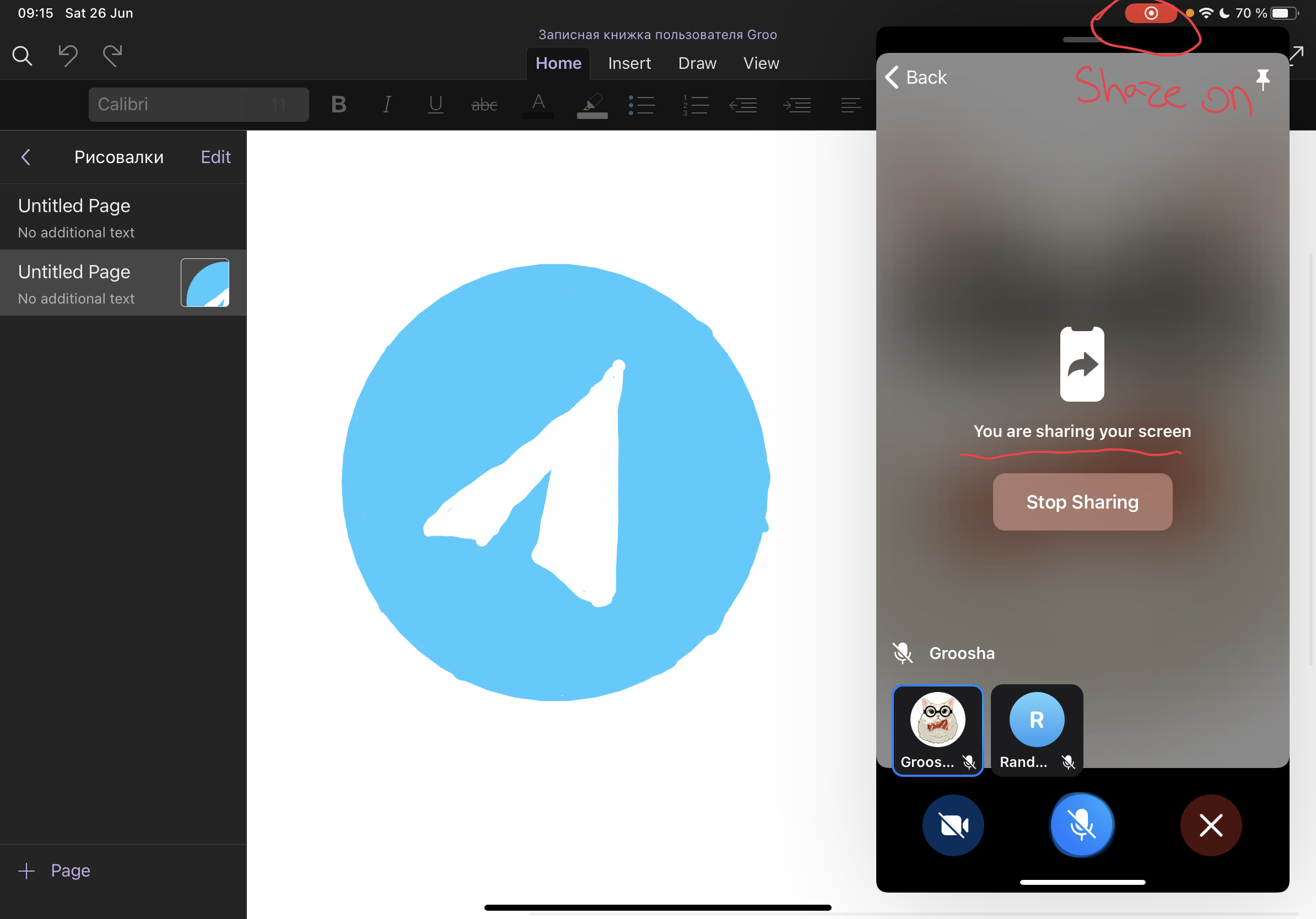 This also happens when you try to screenshare your iPad. On streamer's side it looks like everything is ok, however other people don't see what you share. iPad Pro 2021, iPadOS 14.6, Telegram 7.8 (21399). Screenshots attached: iPad - Streamer, Android - Viewer.