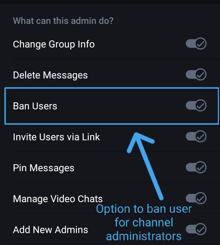 In channels, admins can always ban users regardless of their permissions, it would be useful to remove the permission to ban users to some admins.