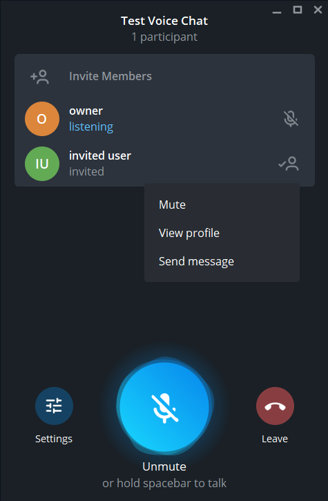 2. Invite a member to the Voice Chat