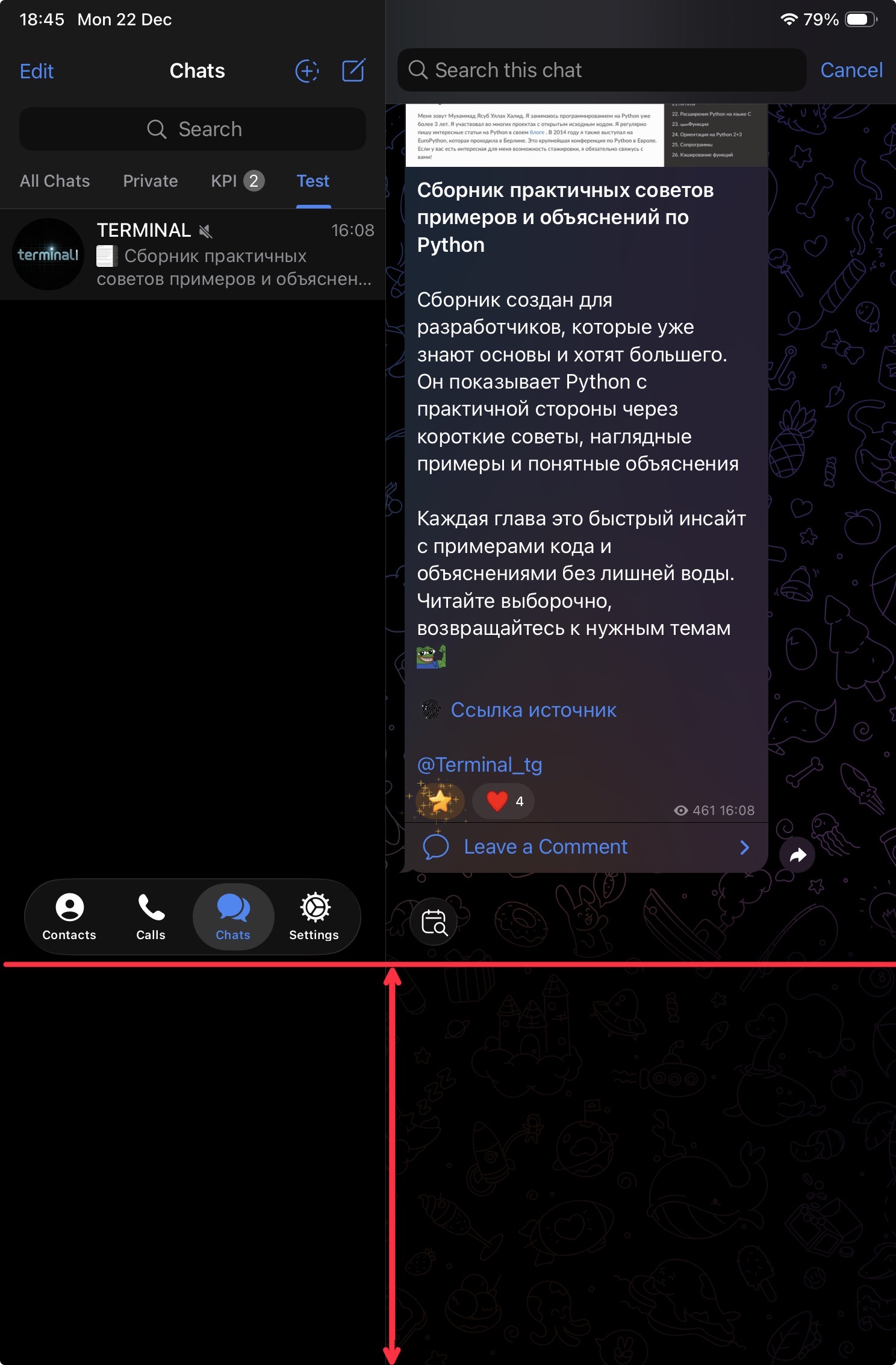 Let me explain the problem again: in the left column with the chat list, a menu is pinned to the bottom edge. This menu is in line with the message input field and the "Send" button. When the keyboard appears, the menu and input field move up to the height of the keyboard. When the keyboard is hidden, the menu and input field remain in place and don't move down into the viewport. Below them is a non-clickable transparent area, through which chats and messages can be seen. Sometimes the menu can remain at the top and the input field moves down, and then when the keyboard is brought up, the input field remains at the bottom and is obscured by the keyboard.