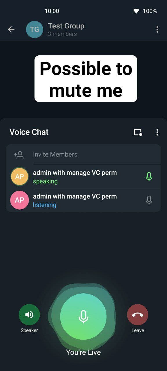 Please add chat permission: Can Talk. How it works If it's enabled, user can talk in a voice chat. Otherwise user is muted. For users In apps it would be useful for chat owners - they will be able to…