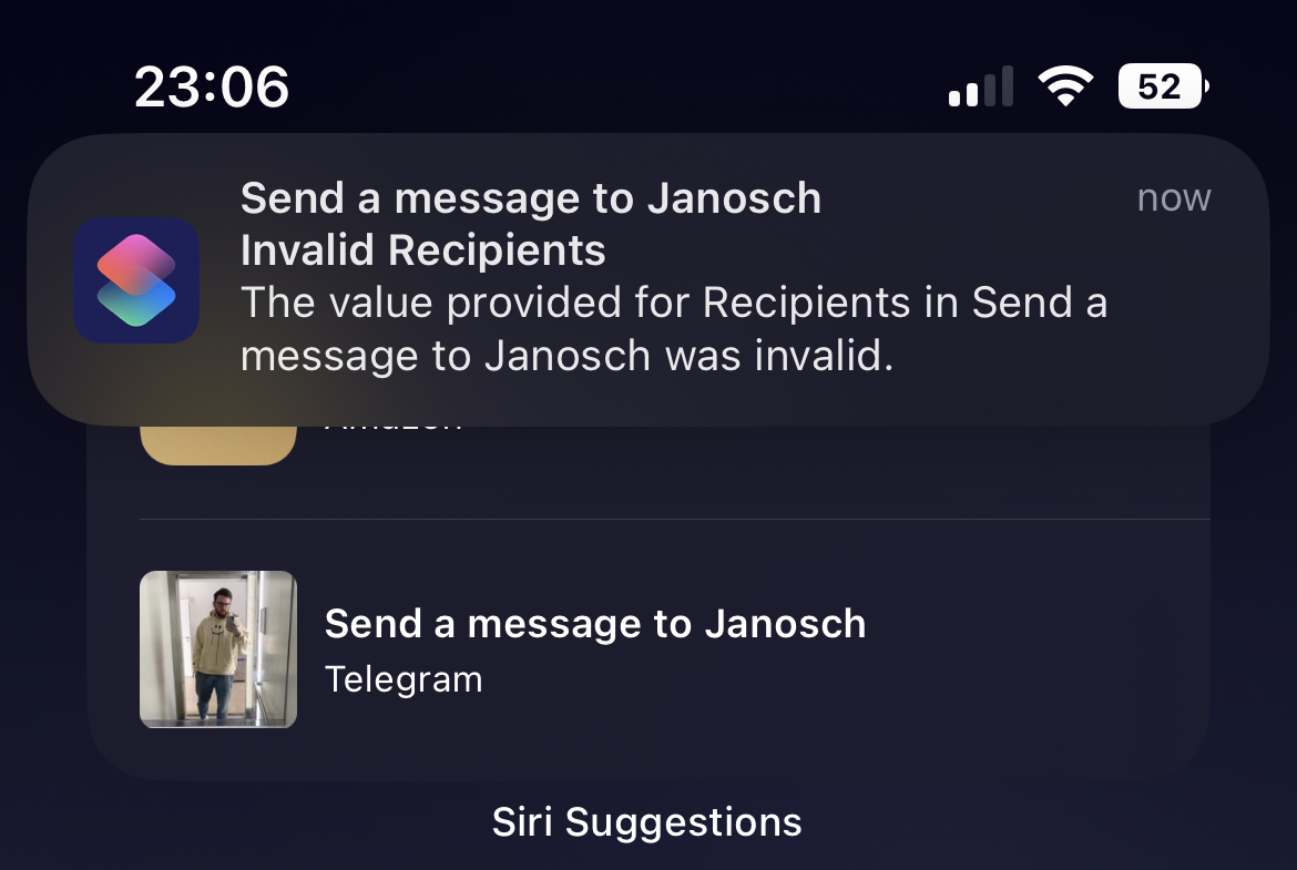[Siri Suggestion] "Send a message to X on Telegram" doesn’t work